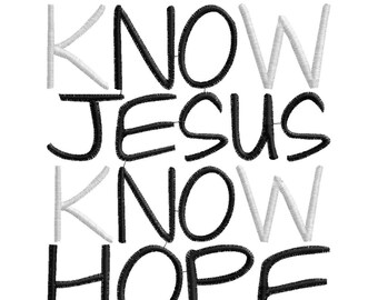 KNOw JESUS kNOw HOPE Embroidery Design, Religious designs, tea towel ideas, Show your faith, Pastor tshirt ideas, display your religion