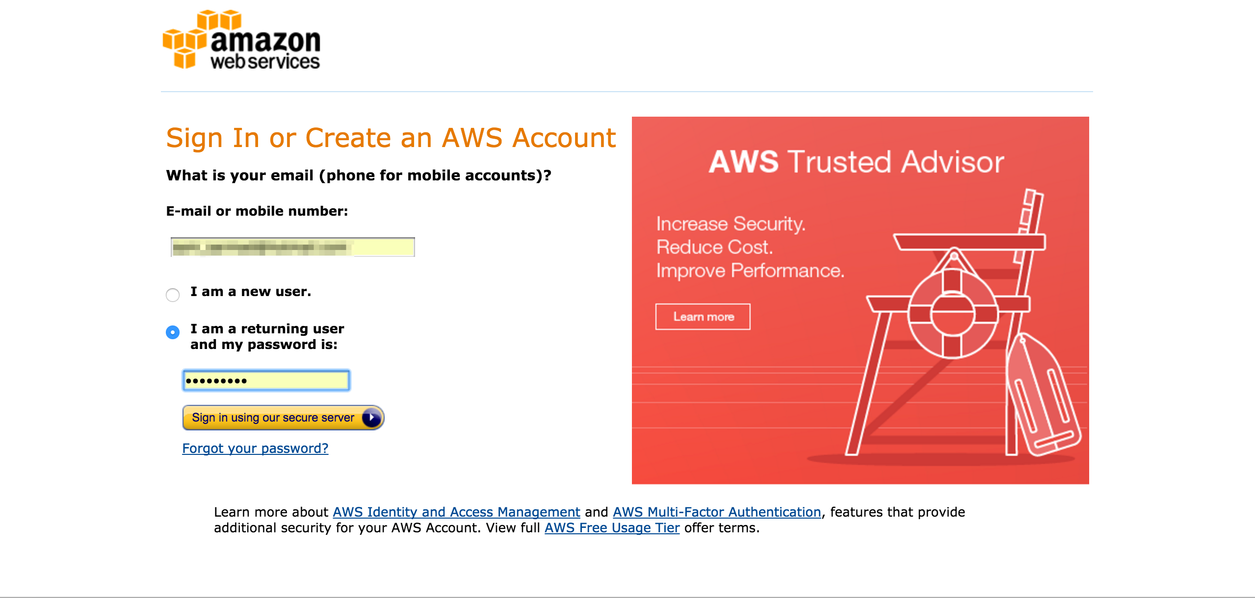 Login to AWS management console. Sign up for AWS if you haven’t already. It’s pretty simple.