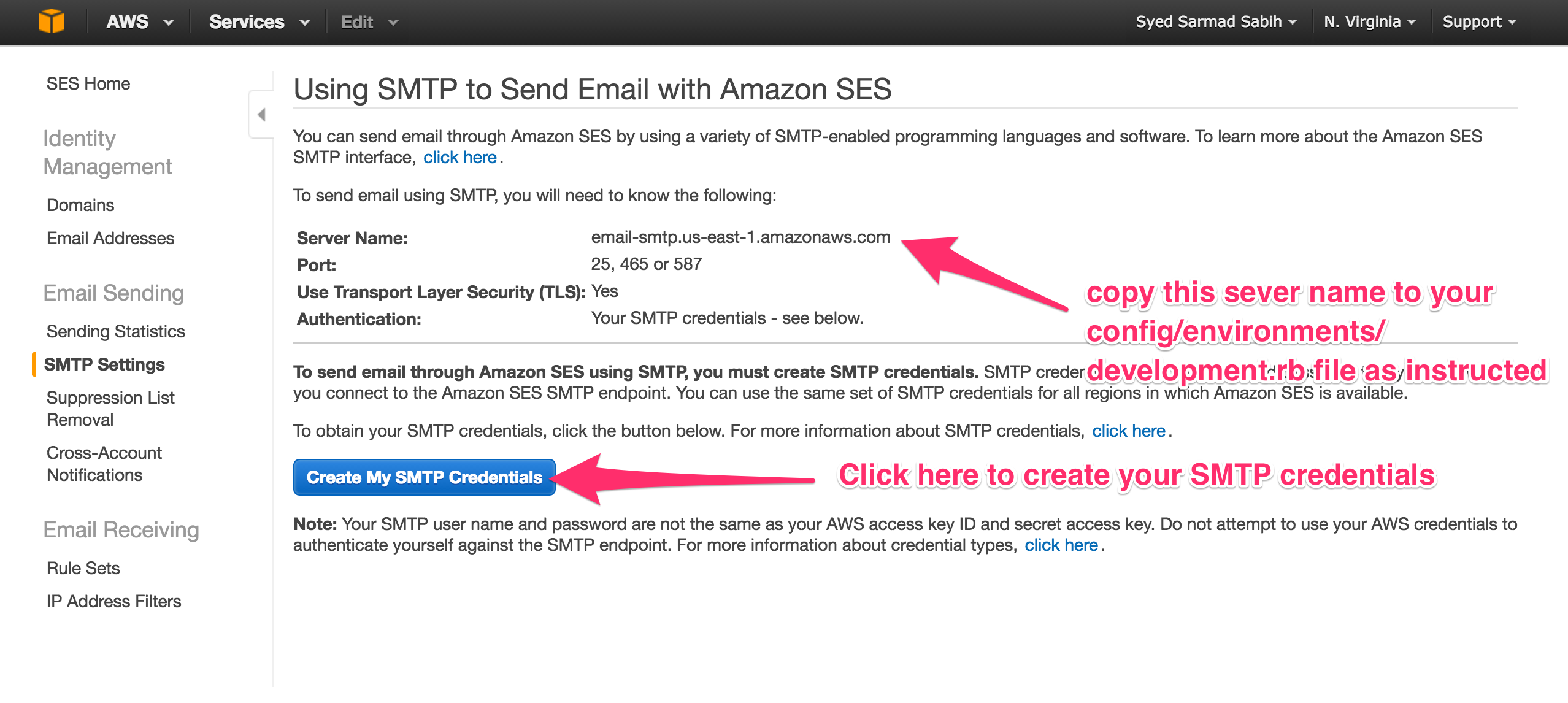 Open up config/environments/development. rb in order to change the SMTP configuration and test the emails out in the local development environment. Deploying this application to a Production environment is out of scope of this post. We’re just going to go through the Amazon SES setup, code and configuration to get our app ready to send 62,000 free email per month from an Amazon EC2 instance. There’s already a great in-depth tutorial on SitePoint which runs through deploying to EC2. In fact, I personally read that tutorial to deploy on Amazon EC2 with Capistrano.