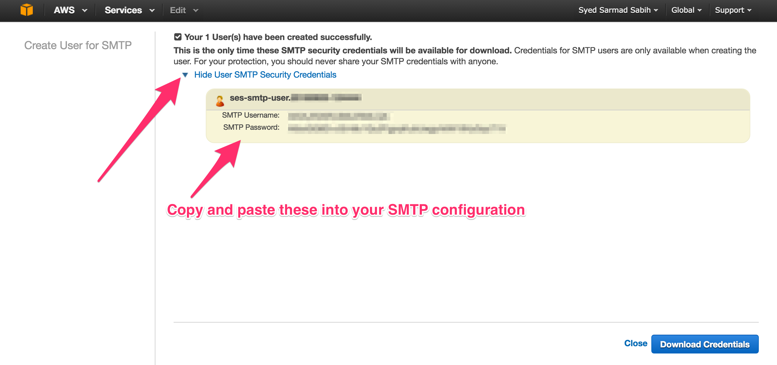 Click on the “Create My SMTP Credentials” button shown in the picture above.
