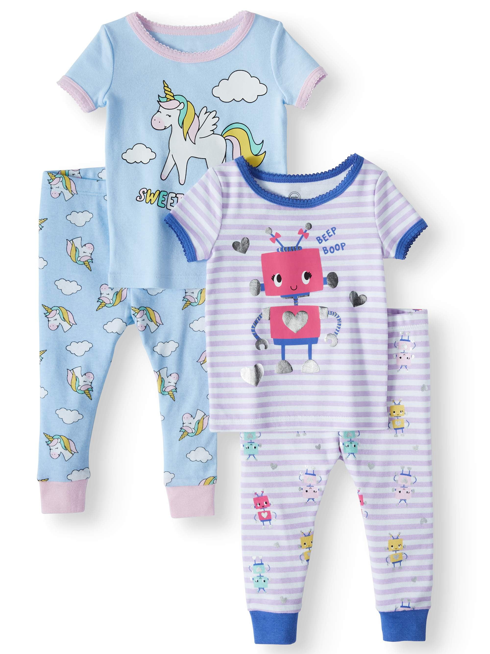 Wonder Nation Cotton tight fit pajamas, 4pc set (baby girls)