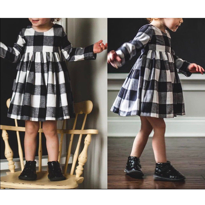 Winter Girl Toddler Princess Dress Kids Baby Party Pageant Plaid Dresses Clothes