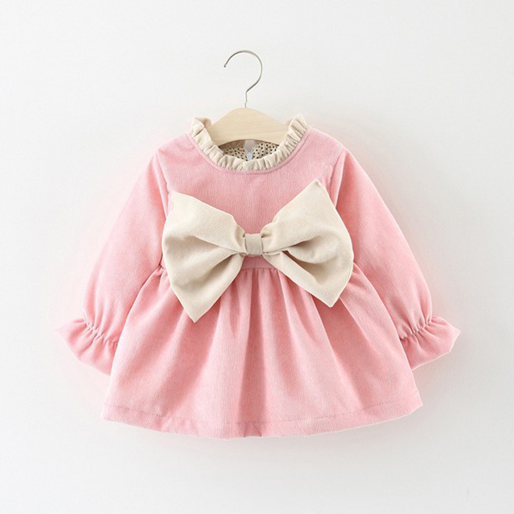 Cotton Newborn Kids Baby Girl Winter Clothes Bowknot Princess Party Pageant Dress