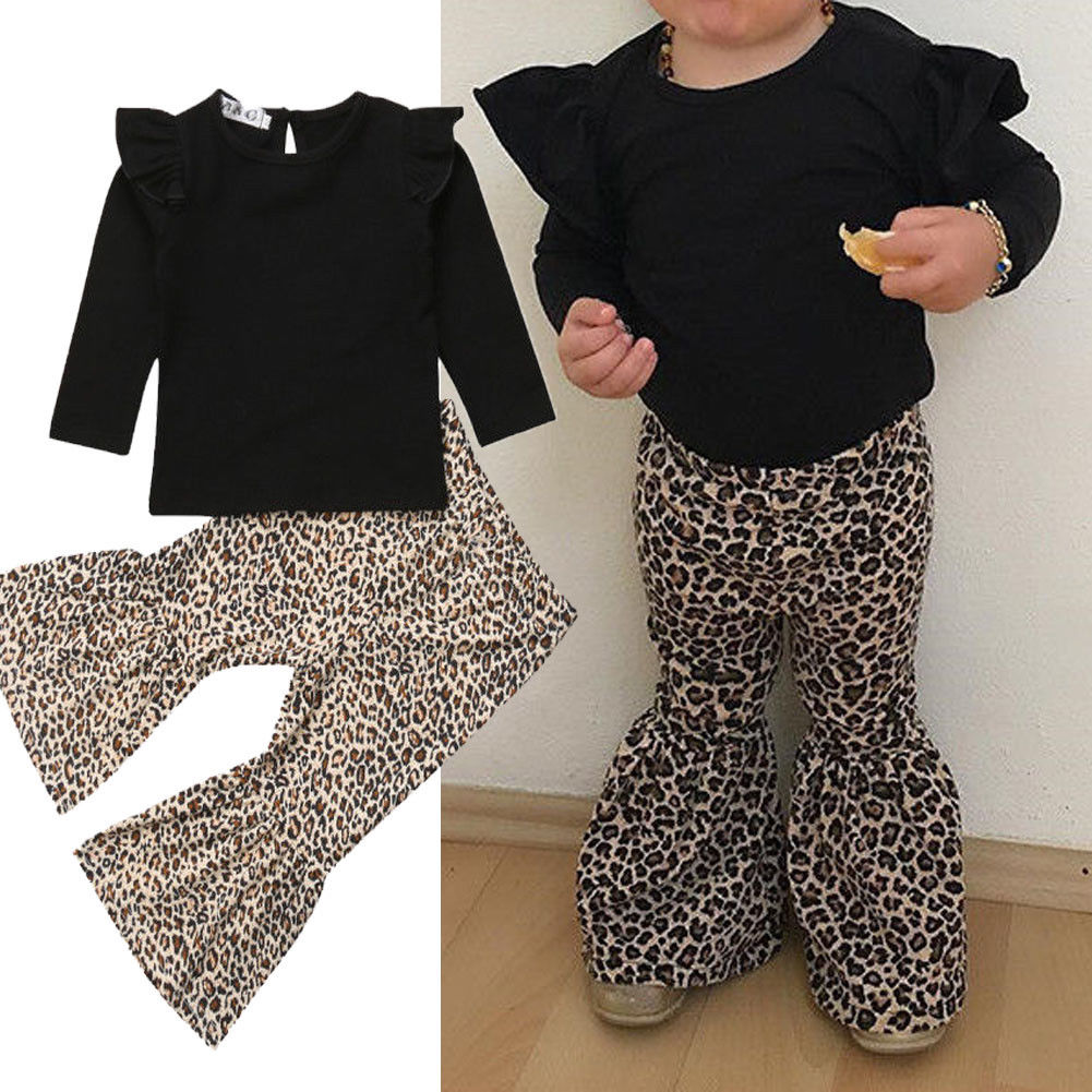 2PC Baby Boy Girl Spring Winter Clothes Outfit Infant Kid Shirt Top+Pant Clothing Suits Black 0-6M